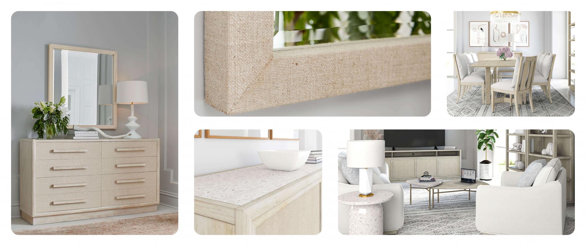 Combining light wood with woven fabric accents in an organic palette of warm neutrals, this collection delivers modern bungalow style at its best. Experience the relaxation and sophistication this collection has to offer. A fresh take on an iconic style delivers a unique look in a class of its own.