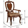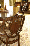 The Old World Shield Back Arm Chair is enhanced on both front and back with shell, scroll and leaf carving and fancy face veneers. The back frame and decorative wood back splat are curved for comfortable sitting, and the roomy scroll front arms feature carved acanthus leaf details. The seat, upholstered in a versatile traditional woven design, is finished with self-welting. The Old World Shield Back Arm Chair can work as part of a dining set or as a useful occasional chair in bedroom, living room or dining room.