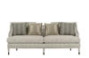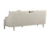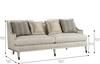 Clean and classic, the sleek Harper Bezel Sofa brings together elements of both contemporary and traditional design: square tapered wood legs, exposed wood frame, curved arms, and a reverse half moon cut out on the back finished in a soft silvery metallic. The upholstered back, deck and two down-blend seat cushions are upholstered in a tonal gray fabric detailed with contrast welting; the sofa also comes with two pairs of coordinating throw pillow.