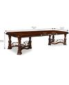 - Dual, three-point base features intricately carved legs and stretchers