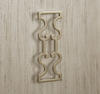 - Lyre inspired hardware and metal stretcher base in a brushed nickel finish
