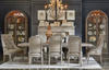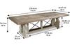 The chic detail of industrial X-braces takes the Pearce Dining Table from traditional to contemporary. The ends of the table are supported on two robust scrolled pedestals; the parquet top is pieced with cathedral elm veneers. The table seats up to ten people with the addition of a 26-in leaf. The top of the Pearce Dining Table is finished in Parch, a light open-grained finish; the base is in Cirrus, a neutral painted finish that has been rubbed and gently aged by hand.