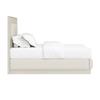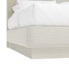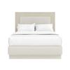 Form complements function beautifully in this modern panel bed, showcasing a solid base frame in a warm neutral finish highlighted by woven fabric wrap and an inset cream upholstered headboard. Reminiscent of strikingly geometric mid century architecture, the headboard and frame present vintage-inspired style with modern appeal.