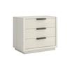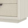 The bold geometry of the Coitere collection represents the perfect intersection of form and function, seen here in a solid base nightstand with textured metal drawer pulls that evokes the style of contemporary architecture. Combining three light wood drawers with woven fabric fronts, this nightstand delivers modern bungalow style at its best.