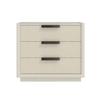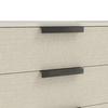- Three (3) drawers for storage (25.25-in W x 14.6-in D x 4.7-in H), Drawer-fronts wrapped in a linen-blend fabric with a performance treatment, Two (2) USB charging port on back side of case, Dovetail drawer construction with soft-close drawer glides, Contrasting textured metal hardware, Plinth style base features adjustable levelers