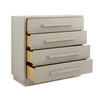 - Drawer-fronts wrapped in a linen-blend fabric with a performance treatment