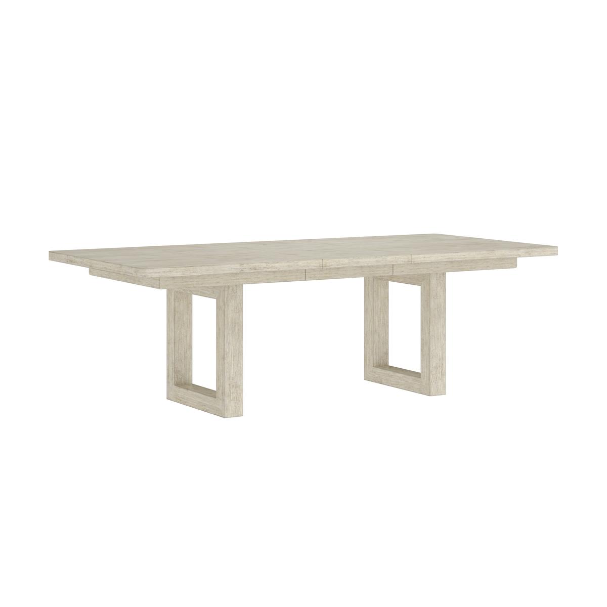 Structure is the essence of design, and the eye-catching Cotiere dining table perfectly blends geometric form with simple modern function. Crafted from parawood solids with a white oak veneer, the table's square donut legs draws inspiration from architecture. leading to 76" top that fits a single 20" leaf addition extending to 96"