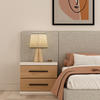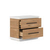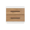 The contemporary lines of this artistic collection inspired this chic two-tone nightstand, combining a sleek white top and plinth base with the warmth of natural wood grain and oversized horizontal drawer pulls. Two drawers provide plenty of space for essential accessories, as well as a USB port for easy charging of personal devices.