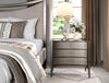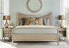 Indulge in the ultimate blend of transitional elegance and glamour with the stunning Cove Upholstered Bed, meticulously crafted to be the focal point of your bedroom oasis. The curved headboard silhouette is a striking feature, boasting a cutout above the upholstered panel for added visual interest and elegance. Each line and curve are meticulously designed to create a sense of luxury and refinement. The plush upholstery invites you to sink into comfort and relaxation, while the mica finished wood trim adds a glittering allure to the design.