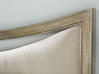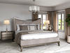 - Headboard, footboard and rails upholstered in a stire inspired fabric in a mushroom colorway
