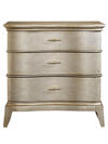 The glamorous little three-drawer Starlite Nightstand sits on tapered legs and is finished with silver Bezel paint that has been glazed and gently aged for a soft sheen.